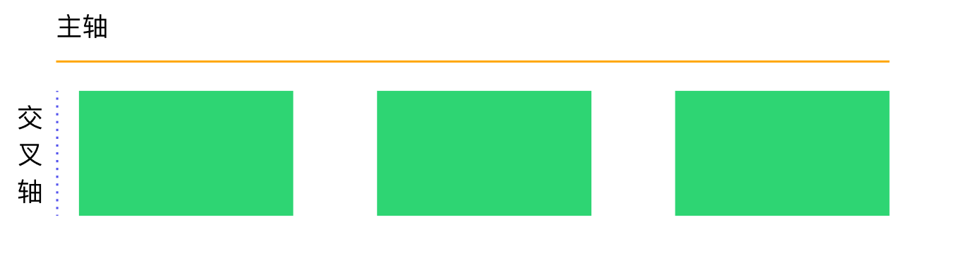 Flex 布局有一个隐式的坐标空间,水平方向有一条主轴(main-axis),垂直方向上有一条交叉轴(cross-axis):